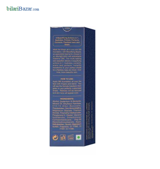 Features All-in-1 BB Cream Contains Vitamin C&E Complexion Enhancer Contains SPF ++ HOW TO USE – Apply BB foundation all over the face with fingers and blend. You will see the formula transform from green to your perfectly customized shade. Redness will be reduced and skin tone will appear even.