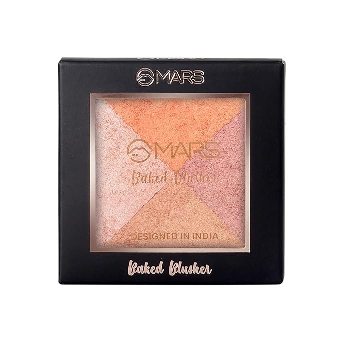 4 IN 1 SHADES- MARS baked Blusher and Highlighter is a beautiful shimmery palette with 4 shades in one that are ideal for creating a glow from within the cheeks and can also be used as a eyeshadow for accentuating your eyes.