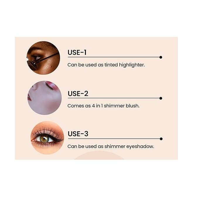 VERSATILE USE- It can be used in multiple ways- Blusher, Highlighter and Eyeshadow. You can mix and match to create a shade of your choice.